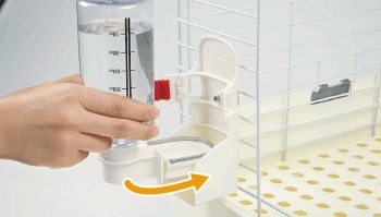 お皿にたまる水を自然な形で飲むことができ、ケージの外側に付けるサイフォン式の皿型給水器です。