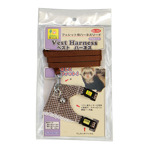「フェレットベストハーネス」は、フェレットの体に優しくフィットするようハーネス本体をベスト風の形状にし、装着を容易にしました。