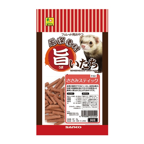 鶏肉ササミ、植物タンパク、コーンスターチ、チーズ、グリセリン、pH調整剤(乳酸ナトリウム)、甘味料(ソルビット)、保存料(ソルビン酸カリウム)、酸化防止剤(エリソルビン酸)、発色剤(硝精)、グルコサミン、コンドロイチン、アガリクス