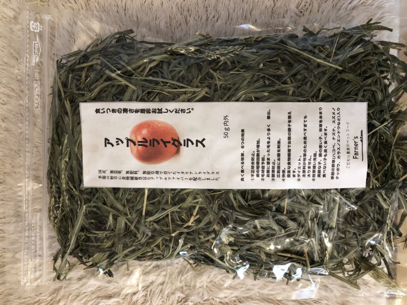 国産、無農薬、無肥料、無除草剤で育てたイタリアンライグラスと季節の野草(ハコベ、ナズナ、スズメノテッポウ、カラスノエンドウなど)に食物繊維豊富なアップルファイバーを配合しました。