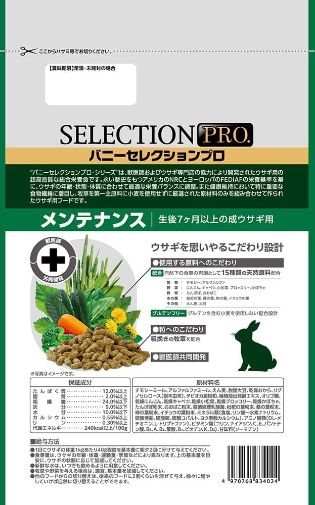 - 生後7ヵ月以上の成ウサギ用。獣医師と共同開発し、グルテンフリーに設計された高品質なラビットフード。
